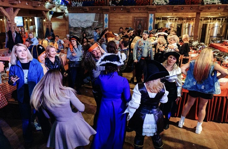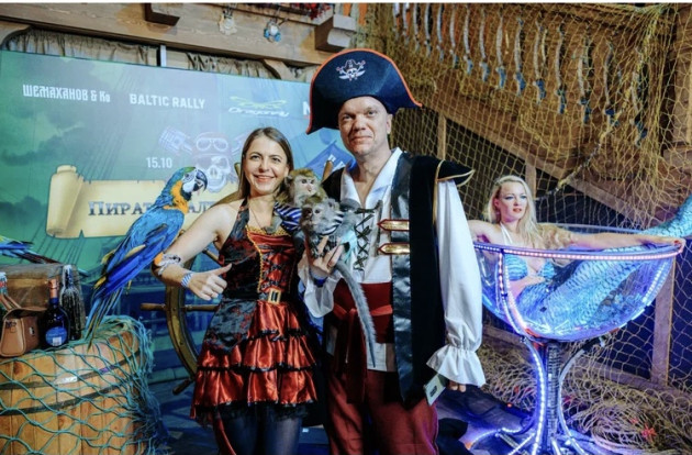 На входе гостей встречал оркестр с волынками и барабанами, сразу создавая праздничную атмосферу. Не обошлось и без настоящего пиратского попугая и обезьянок.