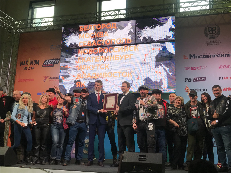 На двух сценах постоянно что-то происходило: кто-то что-то рассказывал и презентовал, было множество номинаций и награждений, а также розыгрыш мотоцикла. Здесь хотелось бы отметить награждение Павла Кобяка и участников пробега Золотая Колыма, которые поставили один мировой рекорд и семь рекордов России, проехав трассу Магадан самой большой авто-мото колонной в истории.