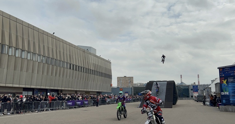 На улице погода радовала, и на уличной площадке тоже было динамично. «Шоу безумцев» порадовало гостей невероятными трюками, скоростью и ревом моторов.