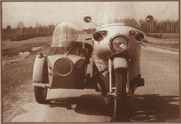 Эти полуобтекатели разработал конструктор гоночных мотоциклов Гейслер (Петр Неонович Гейслер - прим. авт.) и изготовил их из листовой стали. В результате коэффициент лобового сопротивления мотоцикла заметно улучшился. Кроме этого, конечно, заслуживает особого почтения модернизированный двигатель объемом 1040 куб. см и мощностью 40 л. с. Но даже такого мощного двигателя оказалось не достаточно для достижения планируемых 150 км/ч. Образцы на испытаниях достигали только 132 км/ч без коляски и 108 км/ч с коляской.