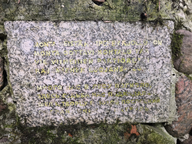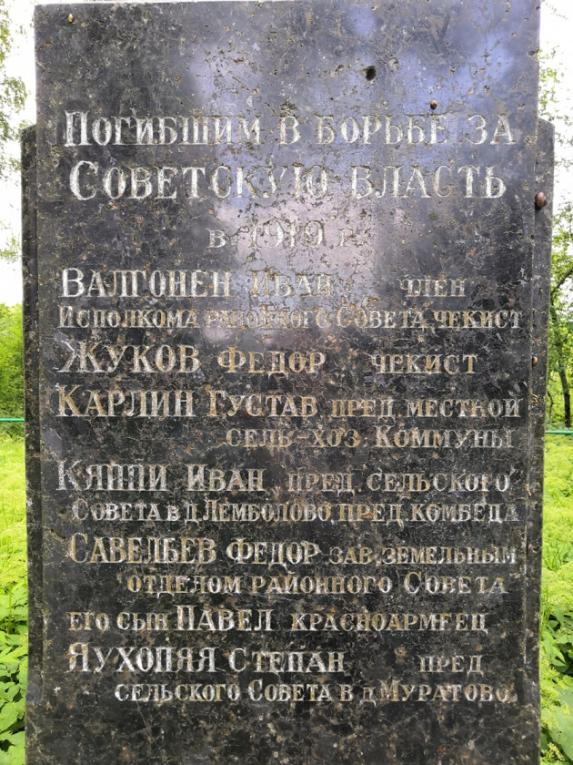 А еще где-то почти через 3 км имеется памятник финским пограничникам. Он поставлен в 1942 году солдатам, погибшим 31 ноября и 1 декабря 1939 года. На каменной плите надписи на финском и русском. Похоже, что на финском стихи, а на русском перевод: