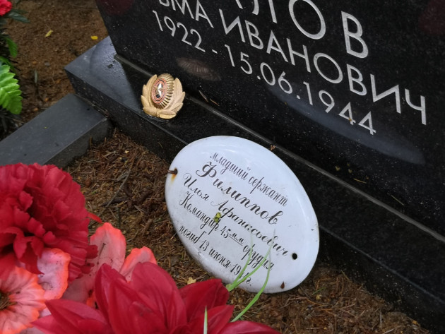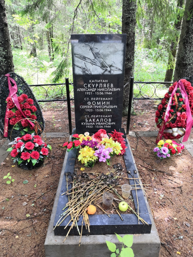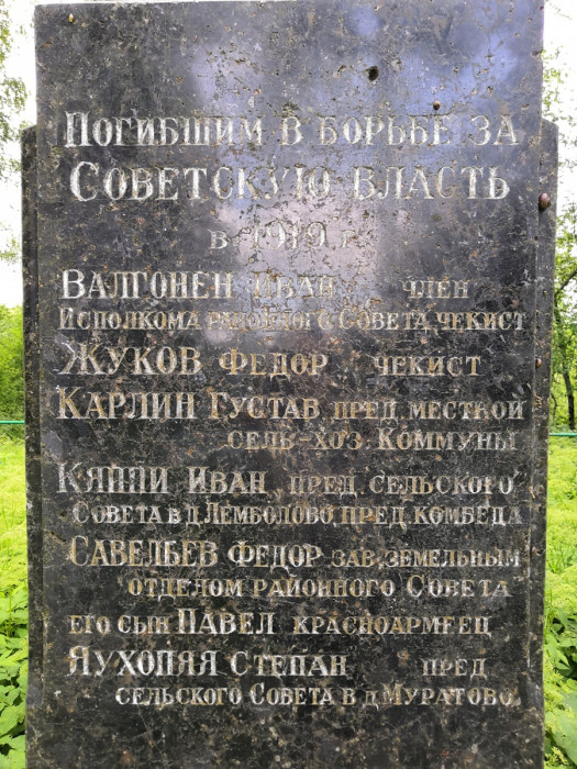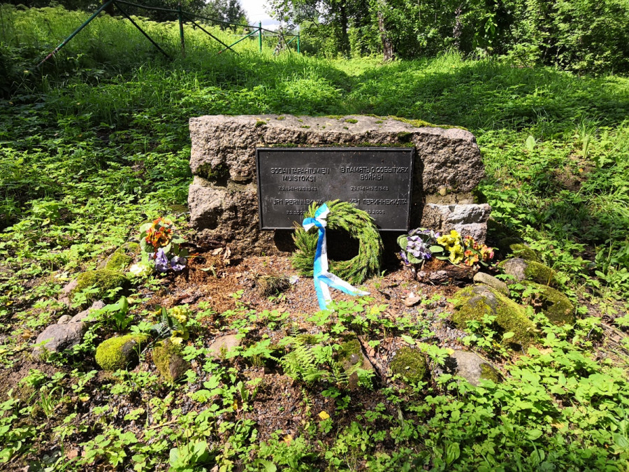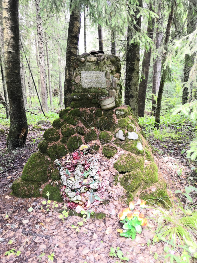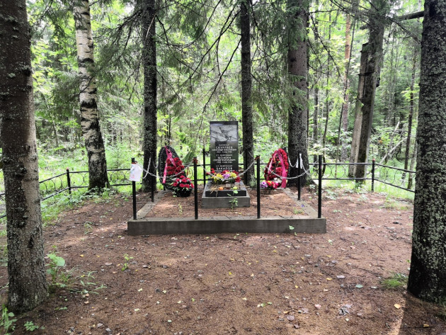 Через километр “с хвостиком”, на “Т-образном” перекрестке с лесной дорогой, остановился почтить память советских воинов. Рядом с дорогой находится братская могила советских офицеров, погибших 14-15 июня 1944 года. Это как раз дни начала Выборгской наступательной операции.