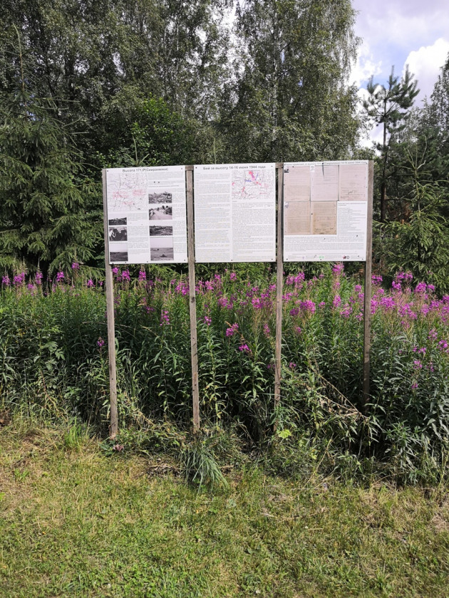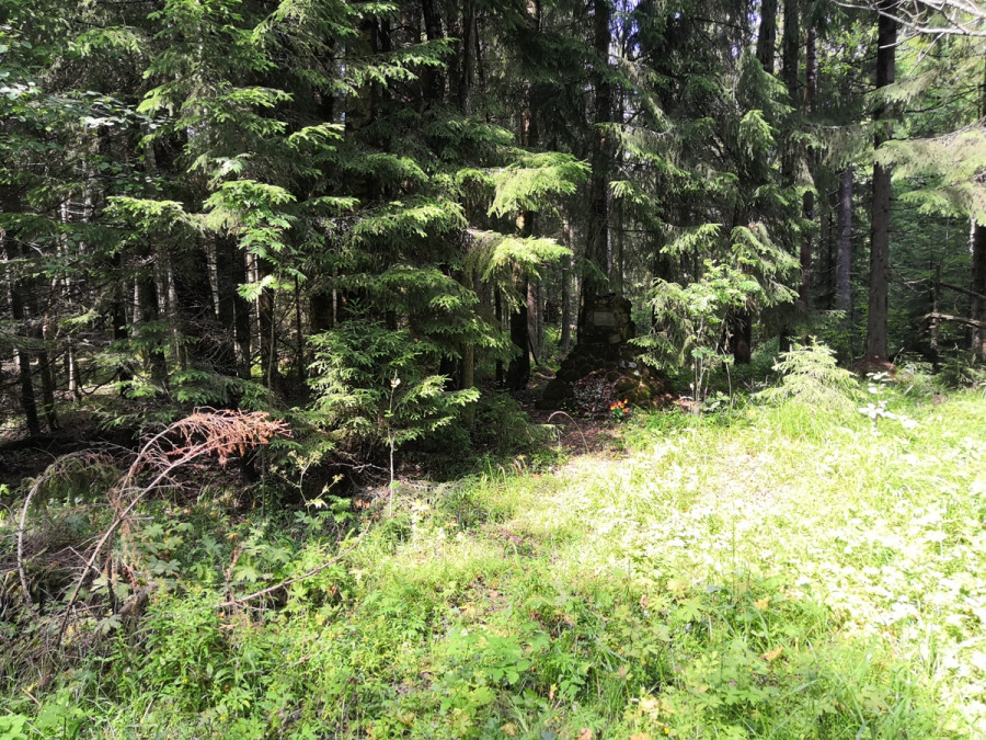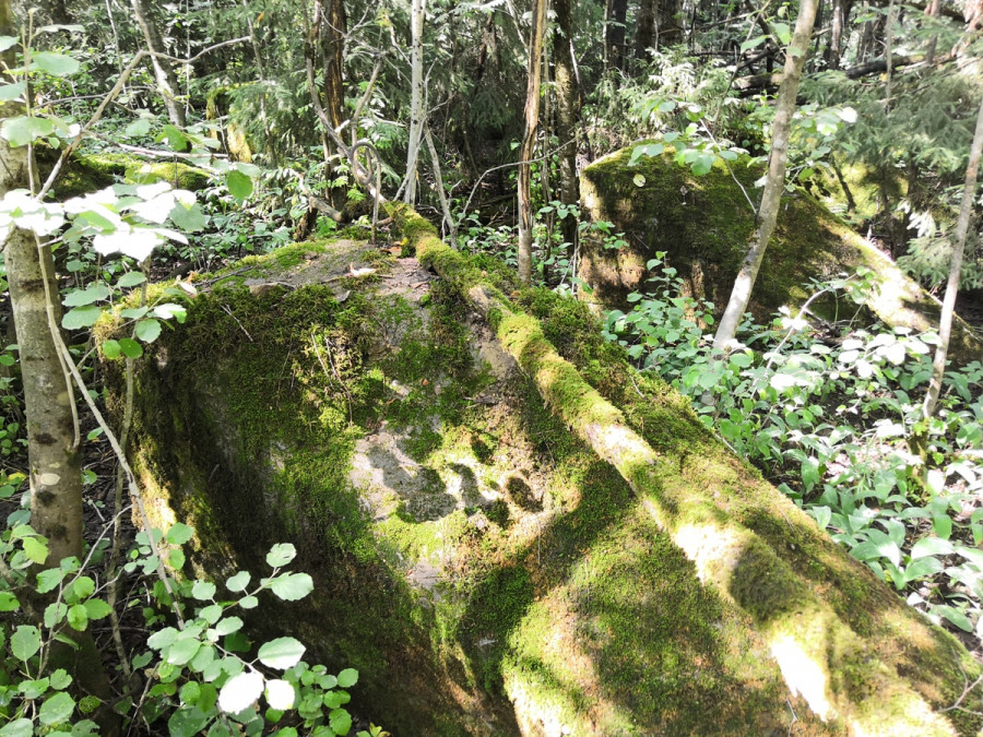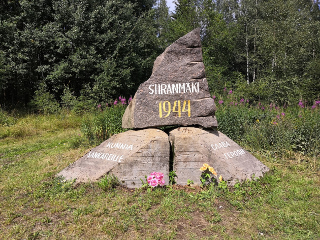 А дальше, свернув направо на бетонку, я посетил укрепузел Сийранмяки на бывшей высоте 171,1. Точнее то, что от него осталось. Финский укрепузел назывался по имени деревни, рядом с которой было возведено пять ДОТов и широкая полоса бетонных противотанковых препятствий (надолбов), которые до сих пор можно увидеть в лесу по обе стороны от дороги. В середине июня 1944 года здесь разгорелись ожесточенные бои, о которых напоминает памятный знак, установленный в июне 2004 года финским обществом памяти.