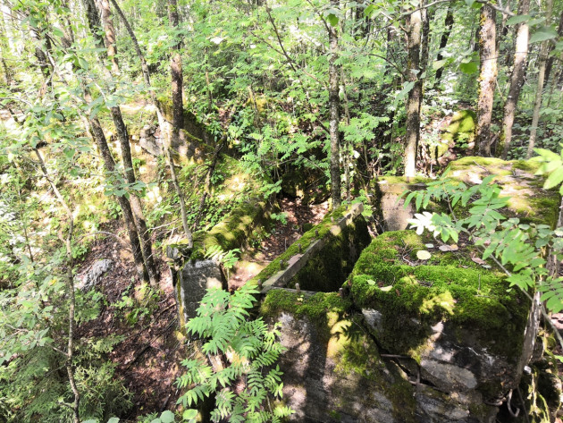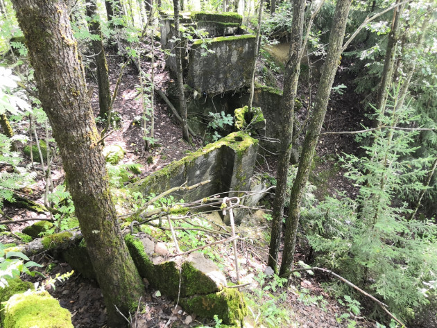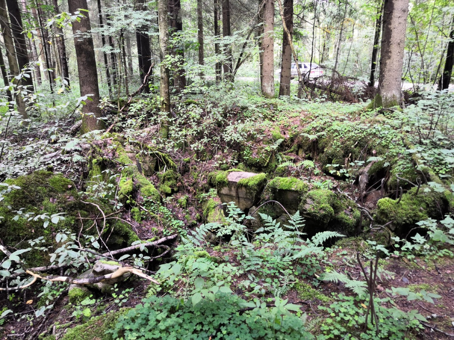 Рядом с пересечением автодорог 41А-025 и 41К-457 имеется так называемый “Сектор Риихисюрья” VT линии. Естественно бывший. Вот туда я и направился. По сути, Сектор Риихисюрья - это останки финских железобетонных укреплений. Самое интересное из них, это командно-наблюдательный пункт с убежищем на 10 человек. С отлично сохранившимся при входе гербом Финляндии и годом постройки - 1942. Остальные останки укреплений ничего особо примечательного из себя не представляют.