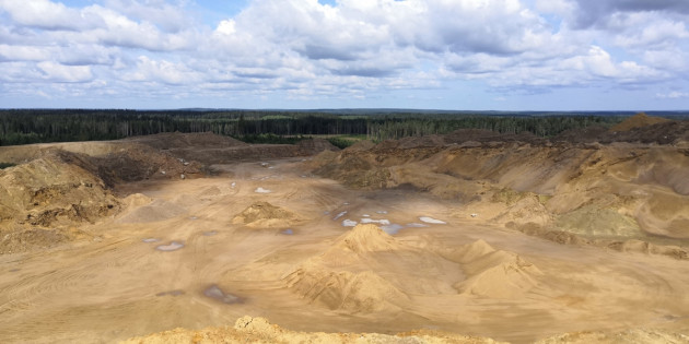 Самое печальное, что здесь, на местах боев, теперь располагается песчаный карьер. И вместо большей части высоты 171,1 зияет огромная яма. Ранее я читал, что поисковики выдергивали останки павших прямо из-под гусениц бульдозеров… Правда, если обойти карьер и встать к нему спиной, открывается прекрасный вид на лес, который располагается где-то далеко внизу…