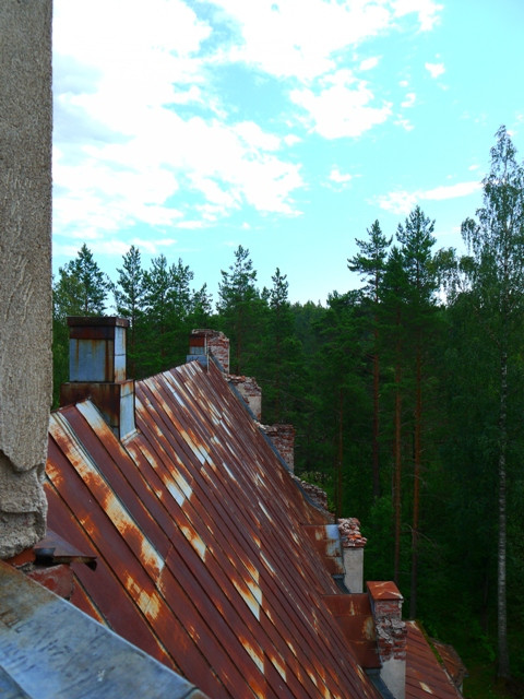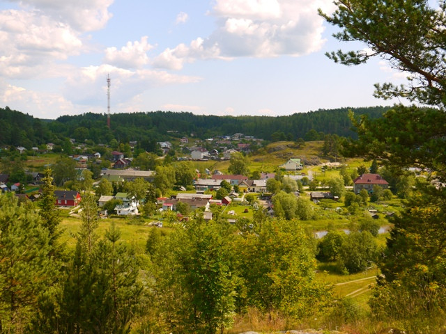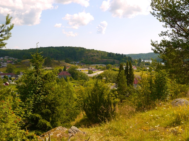 На другой стороне дороги от музея поднялся на гору Линнамяки. Когда-то, на вершине горы была шведская крепость Кроноборг. Сейчас от неё остались лишь один фундамент и заросший вал. Которые практически не различимы. Но, вид с горы на поселок и на окрестности красивый.