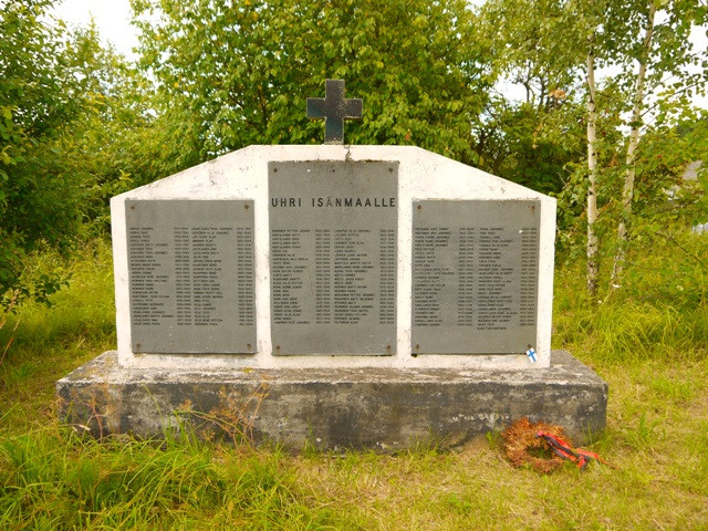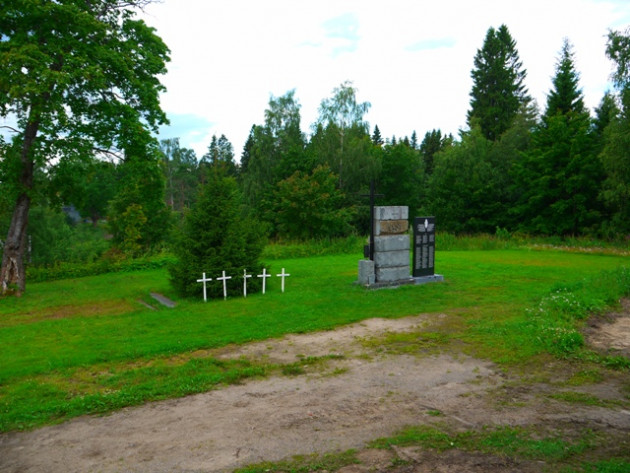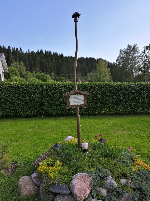 При въезде в Поселок Хелюля, обследовал странный безымянный памятник, который меня заинтересовал ранее. Но по разным причинам раньше у меня не было времени или возможности остановится. Сейчас я ехал один, никуда не торопился и поэтому уделил время на изучение интересующей меня достопримечательности. Место похоже на старое кладбище или просто на огороженную территорию вокруг памятника. За местом виден уход. Может, не часто, но трава скашивается. На гранитном камне, поставленным на пьедестал никаких надписей не было. Интернет тоже никакой информации не дал.