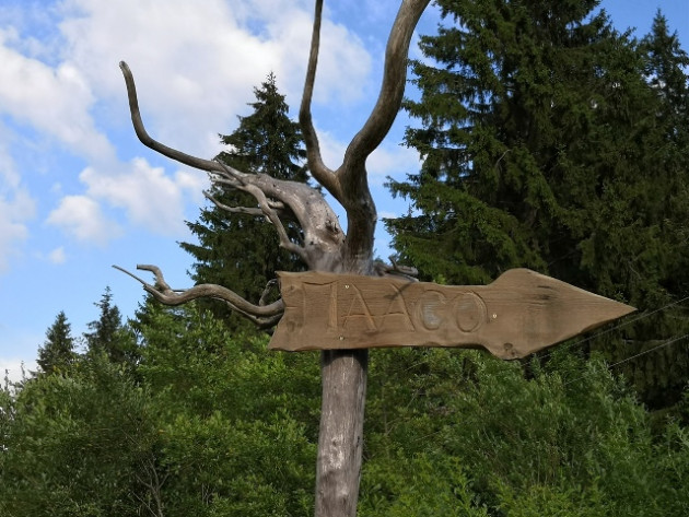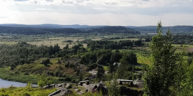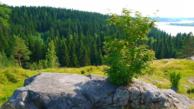 Настоятельно рекомендую залезть на гору всем, кто еще этого не делал. Перед мостом через реку Хелюлянйоки есть поворот направо и вот там можно припарковать свои транспортные средства. Рядом имеется частный жилой дом, от которого начинается тропа на гору с указателями и заботливо сделанными скамеечками. Интернет дает информацию, что высота горы “всего” 79 метров.