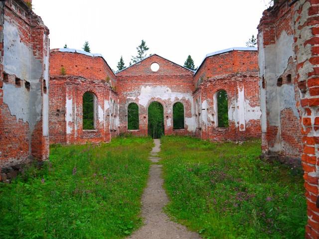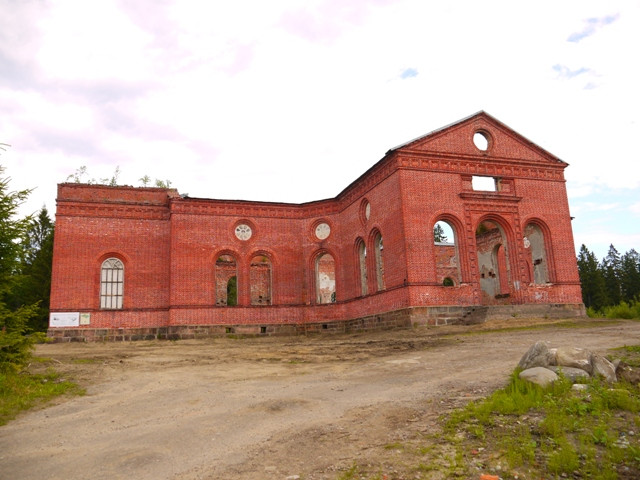 В Лахденпохье самое интересное историческое место это Лютеранско-Евангелическая церковь прихода Яаккима. Точнее, только краснокирпичные стены её. Но все равно смотрится величественно-печально-красиво. Опять же, я не в силах проехать мимо. Хоть и бывал здесь ранее.