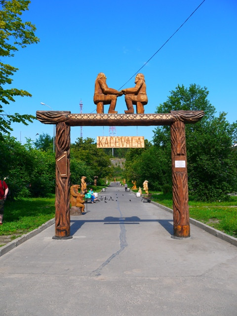 Выезжая на дорогу в сторону Сортавалы, проезжал мимо бульварчика с пешеходной зоной и какими-то деревянными фигурами. Перед входом на пешеходную зону установлены некие деревянные резные ворота с деревянными же резными фигурами и с надписью “KALEVALA”. При детальном обследовании деревянных фигур на пешеходной зоне, оказалось что это герои карельского эпоса. Я их всех узнал и догадался, потому как читал “Калевалу” несколько лет назад. Весьма интересное чтиво. Впоследствии, интернет мне открыл истину: данная пешеходная зона называется “Аллея Калевалы”, которая открыта летом 2019 года после фестиваля резчиков по дереву. Хорошая идея. Мне понравилась.