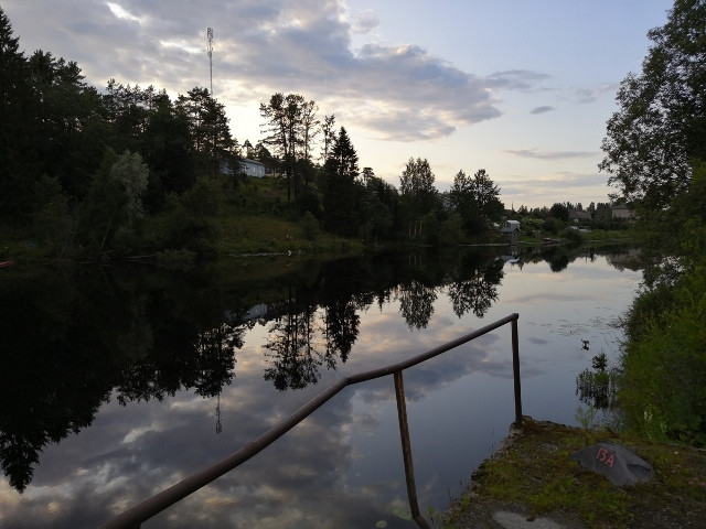 Дальше, в планах у меня было посетить известный многим железнодорожный арочный мост финской постройки на реке Янисйоки близ озера Янисъярви. На половине дороги к поселку Ляскеля начался мелкий дождик, да и время уже было седьмой час вечера. Я решил остановится на ночлег в отеле “Усадьба”.