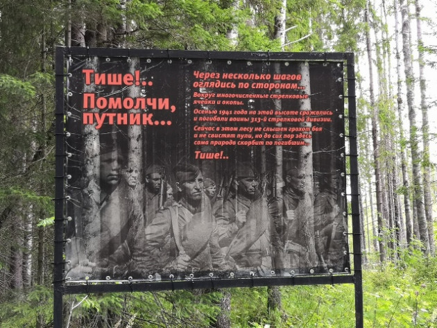 Вроде, ходишь один в тишине, только ветер в соснах мирно шумит, да где-то по шоссе проезжают нечастые авто, но явственно представляешь грохот взрывов, свист мин и звуки стрелкового оружия. “Война где-то здесь...” (С)
