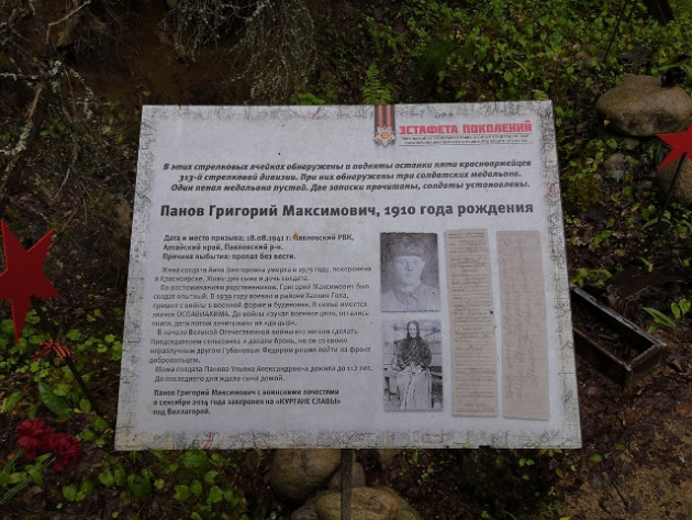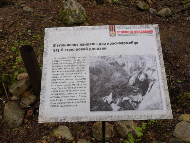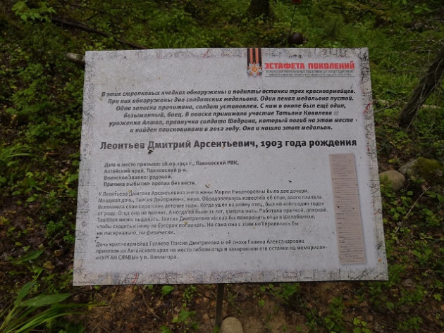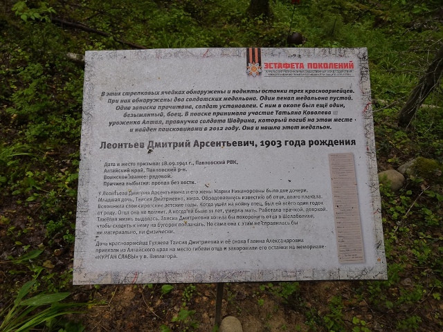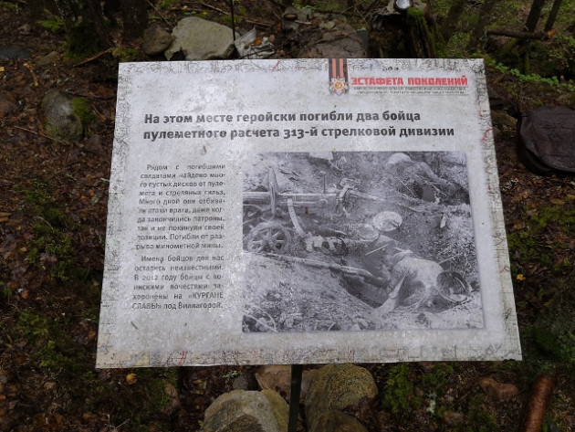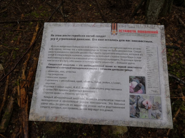 Еще, в некоторых местах, установлены таблички с именами бойцов и командиров, чьи останки удалось идентифицировать и кратким описанием боевых действий.