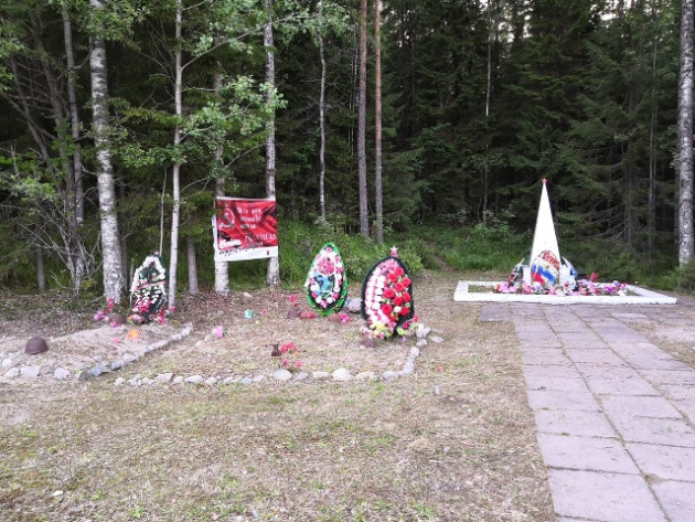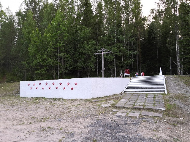 Поскольку уже весьма вечерело я поторопился в сторону Медвежьегорска, попытаться найти там ночлег. На подъезде к городу обнаружил воинский мемориал. Похоже, что шефство над ним взял мотоклуб Северный народ (Nord Nation).