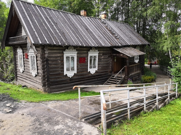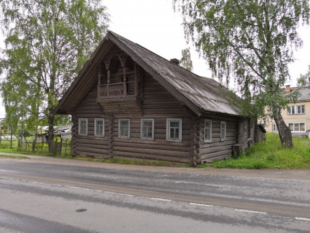 Утром, позавтракав, покатил в Пряжу. Это поселок на берегу Пряжинского озера. Поехал не по “Коле” (она по краю поселка идет), а через поселок по улице Советской. Она местами по берегу озера идет. Ехал тихонько, смотрел по сторонам. Рядом с дорогой имеется деревянный карельский дом. Видно что старый, но еще крепкий. Красивый. С балкончиком. На балконе резное ограждение. Этой вот резьбой по дереву, богат и знаменит Карельский край.