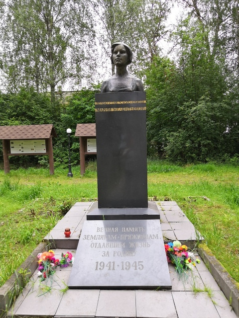 Потом еще проехал мимо сквера с памятником. Остановился. Пошел посмотреть. Оказалось, что это братские могилы Советских воинов и памятник знаменитой землячке Пряжинцев - Марии Мелентьевой. В 19 лет она стала Героем Советского Союза. К сожалению, посмертно.