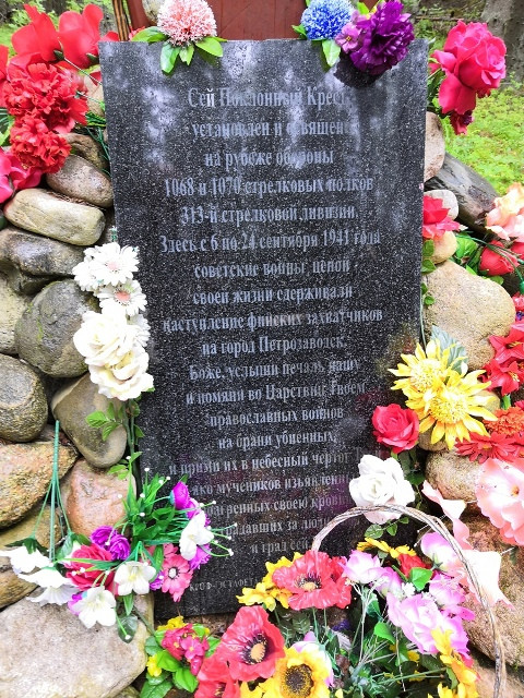 Так я пришел к началу маршрута по мемориалу, в центральной части которого, на небольшой поляне, установлен поклонный крест в честь павших защитников Петрозаводска. Вроде и просто, но очень проникновенно ребята сделали.