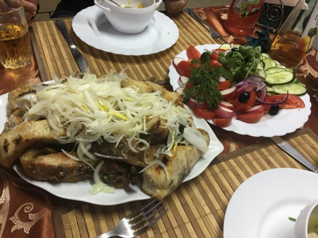 Рыбачить я не поехал, отдыхал на базе два дня. А парни ходили на катере и чего то там наловили. Хотя, за деньги, нам приготовили и уху, и шашлык из осетрины. Нафиг мне эта рыбалка.))