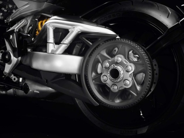 Под эффектной, элегантной, но в то же время агрессивной внешностью расширения модельного ряда Diavel, скрывается многодневный труд разработчиков. Это и новый 1262-кубовый двигательTestastretta DVT с системой сдвига фаз газораспределения впускных и выпускных клапанов, ранее представленной на силовой установке Multistrada 1200, и 156 л.с. мощности и 129 Нм крутящего момента, который он производит. Сюда относится и несколько режимов движения, трэкшн-контроль и круиз-контроль, а также функция Ducati Power Launch (DPL) - лаунч-контроль для самого быстрого старта со светофора, активируемая нажатием клавиши на правом пульте руля и 3,5-дюймовый цветной дисплей приборной панели.