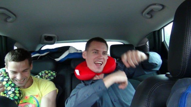 А я напомню уважаемому читателю, что в Европе для машины с прицепом ограничение скорости 80 км/ч на автобане, за городом на двухполосной дороге - 70 км/ч (Польша). Поэтому наше продвижение проходило крайне медленно. И мы развлекали себя в машине, как могли...