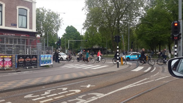 По дурости мы сунулись на машине в город в надежде найти парковку. Да, мы были столь наивны. Тут нереально припарковать машину. А ещё нереальнее на машине ехать. Ведь кругом велосипедисты и скутеристы, которым разрешено передвигаться по велосипедным дорожкам. И для них светофоров намного больше, их все должны пропускать. Одним словом, если вы решите прогуляться по Амстердаму, то это стоит делать именно на велосипеде.