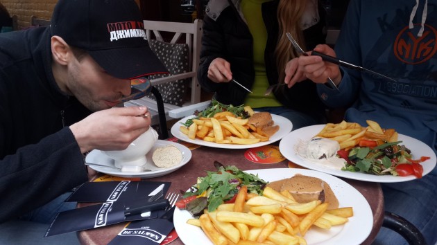 Учитывая, что в последний раз мы ели яичницу в 11 утра, а время было уже около 5 вечера, мы очень "хотели жрать"! Поэтому мы нашли кафе поприличнее, где было побольше посетителей, и сели в ожидании официанта.