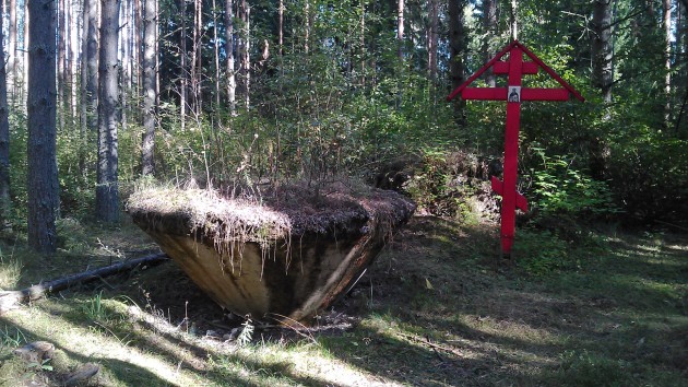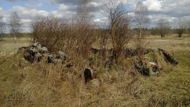 Братская могила Девочек Лесорубов находится так же на територии полигона. Но для этого надо выехать опять на шоссе повернув на право ехать дальше . Через несколько километров ,опять же карты яндекс в помощь, будет проезд на карьер. Пропускают туда только на выходных. Карьер рабочий. Вам надо объехать весь карьер и спешится перед шлагбаумом или превратится в эндуриста. Мот можно пристегнуть к шлагбауму. Прийдясь или проехав в доль кснавы до мостика деревянного,и перейдя по нему ( переезжать не стоит) вы увидите братское захоронение.