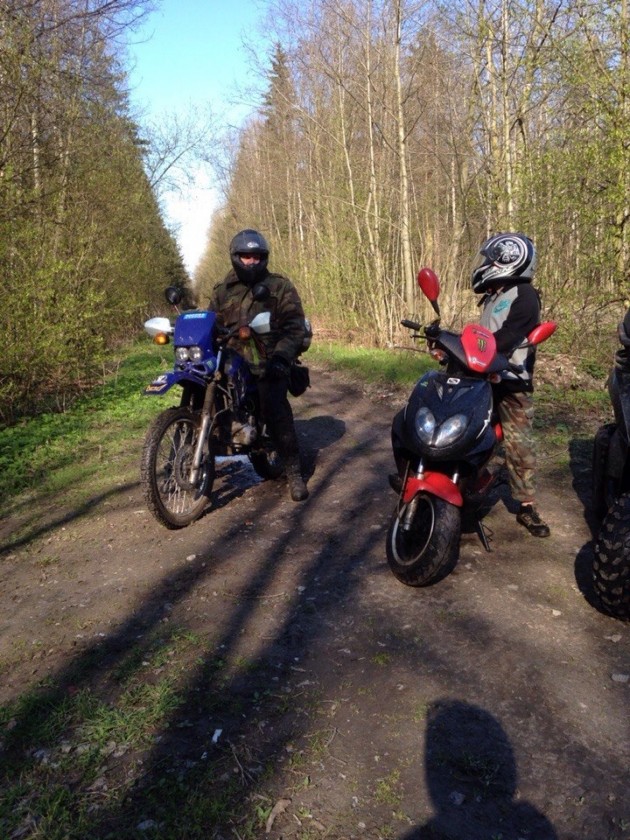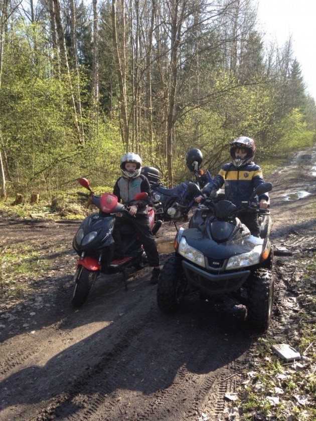 Прошли эти праздники на открытии дачного сезона. И на лесных покатухах с детьми,(мое дите нс скутере,соседскиц парняга на квадрате )