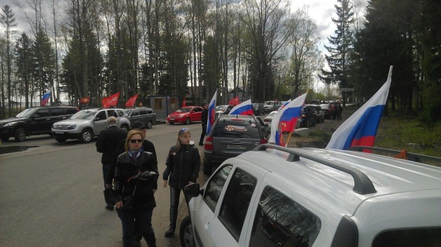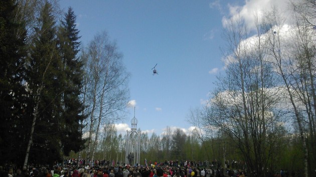 Нас остановил перед переездом Сотрудник ДПС сообшил что на ближайшие пару часов движение перекрыто на выезд из Дубровки,но всетаки согласился пропустить нас,взяв обешание ехать предельно акуратно и медлинно. Мы поехали к мимориалу. Постояв ,посмотрев открытие памятника Неизвестному Солдату