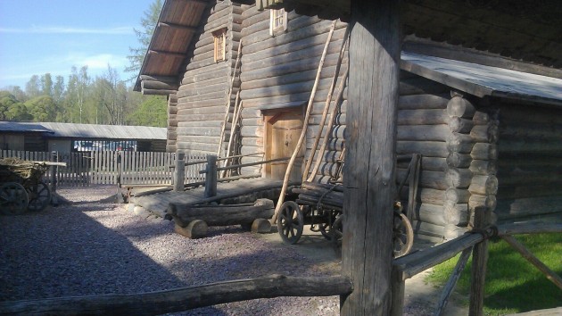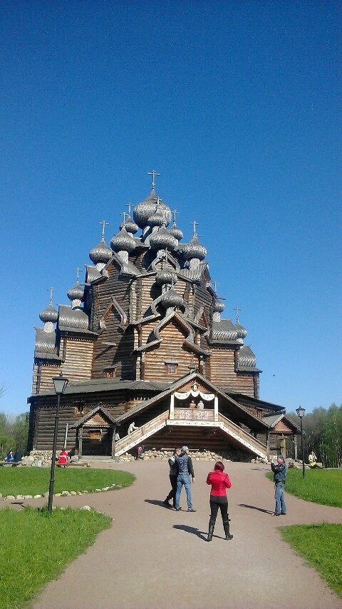 Если ехать из Питера по Октяборьской набережной,первую остановку можно сделать в Невском Лесопарке. Там находится полностью возведенная из дерева Покровская церковь с небольшим но интересным двором.