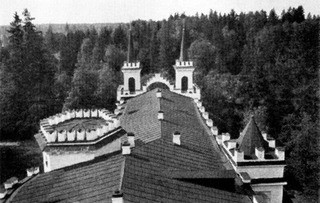 В настояшее время от усадьбы осталось 2 стены и очертания ее можно проследить местами по остаткам кладки. А выглядела она так.