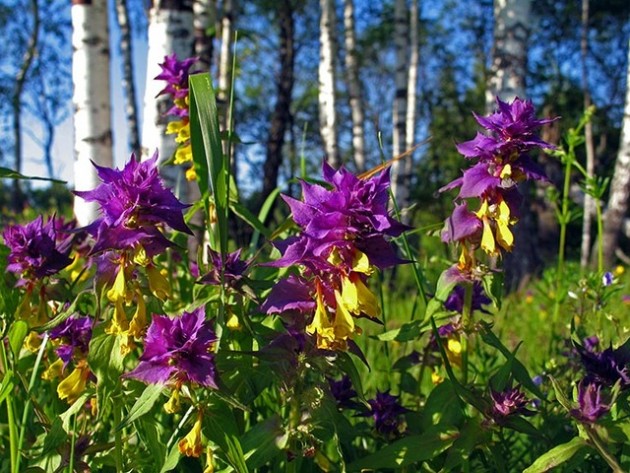 Поле покрытое васильками и цветком под названием Иван да Марья.