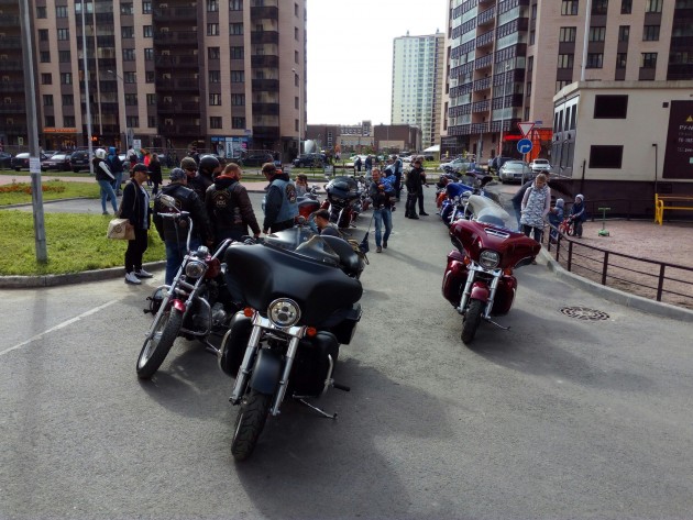 Далее по сценарию байкеры поворачивают во двор, ну и как всегда музыка орёт из колонок на мотоциклах, пасаны на лавке у парадного завидуют, девки их визжат, обещают "борщ сварить" ( шутка)