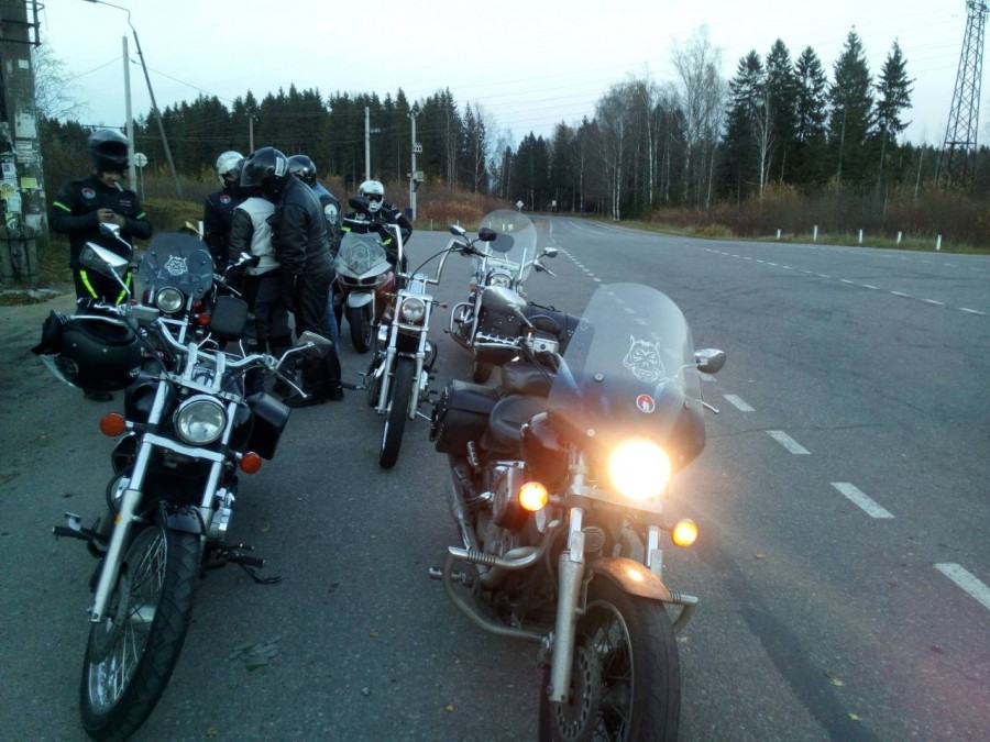 Немного подзаправив свои "крейсера" и заняв места в строю, маленькая мотогруппа под симфонию глушителей направилась в сторону КАД.