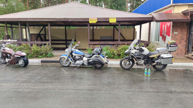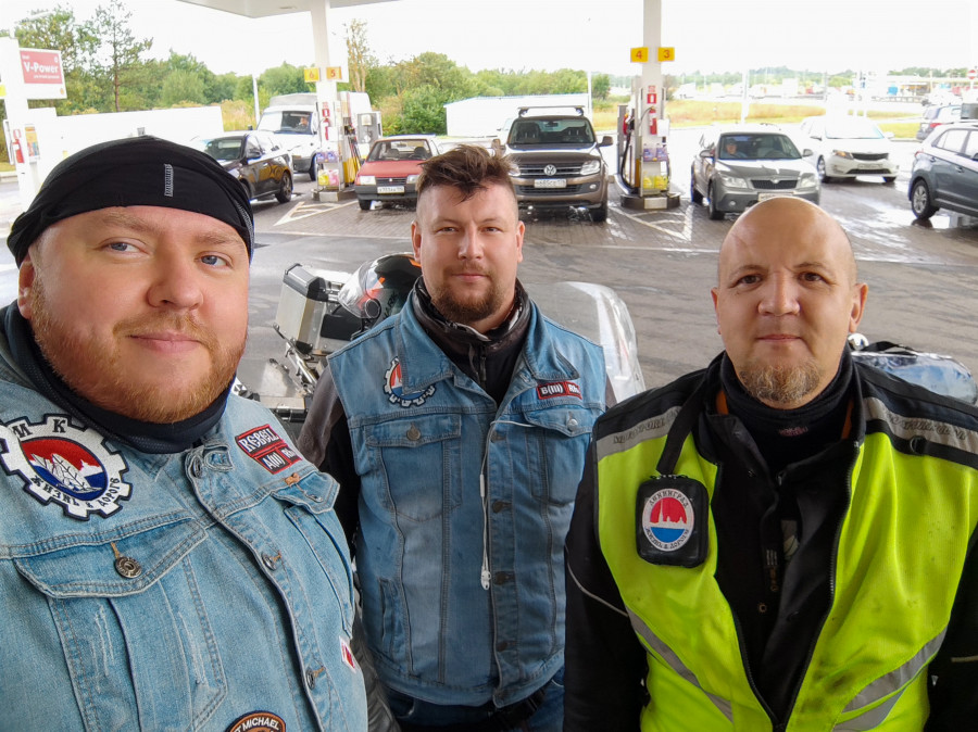 Холодно, мокро и ураганные порывы ветра. Только вперед! Кто как может, главное вперед. Через два часа останавливаемся заправиться и согреться в кафе. Замерзли все, Наличие теплой одежды и дождевиков почти не спасало. Разве что тяжело было это все снимать-одевать. Так и согрелись.