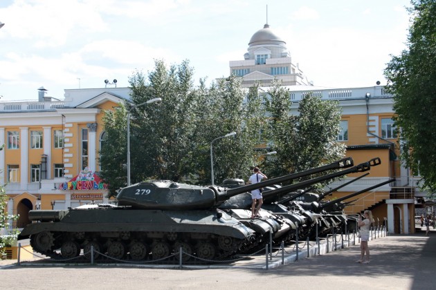 Очень интересна выставка военной техники времён Великой Отечественной Войны в парке возле дома офицеров.