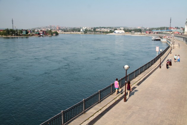 Дальше мы двинулись в сторону набережной реки Ангары. Течение реки довольно сильное но вода при этом бирюзово-прозрачная, ведь Ангара это единственная река вытекающая из Байкала.