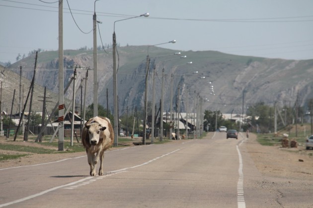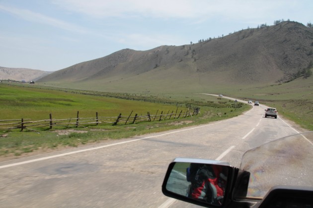 Путь из Иркутска до переправы на о.Ольхон составляет около 300 километров. Почти весь маршрут это ровный асфальт. Исключением является отрезок пыльной грунтовки протяженностью примерно в 10-15 километров. Дороги на самом Ольхоне, как нам объяснили местные, такие же примерно, как этот кусок – грэйдерная гравийка типа стиральной доски и куча объездных, накатанных по сопкам вокруг.