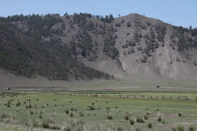 Переправившись на остров, мы увидели старый ПАЗик Дяди Лёшиного коллеги, к которому он и порекомендовал обратиться, т.к. тот как раз должен был забирать людей в это время и вести в Хужир на базы. Мы поспешили в ту сторону в надежде что сможем уехать на этом транспорте, ведь вопрос самостоятельных передвижений по острову без собственного транспорта, как выяснилось, очень непрост (Такси – 5000р.(!!!) или редкие маршрутки, которые в выходные забиты под завязку изначально – как объяснил Лёша, мол, сезон очень короткий и все хотят заработать). Нам повезло, водитель согласился взять нас на борт за 150 р. с носа. Дорога от переправы до посёлка около 40-ка километров не очень хорошей грунтовки. Это не помешало водителю качегарить свой транспорт на полную. Борта автобуса ходили ходуном а стёкла дрожали. Пару раз чувствовалось как машина теряет сцепление с дорогой.