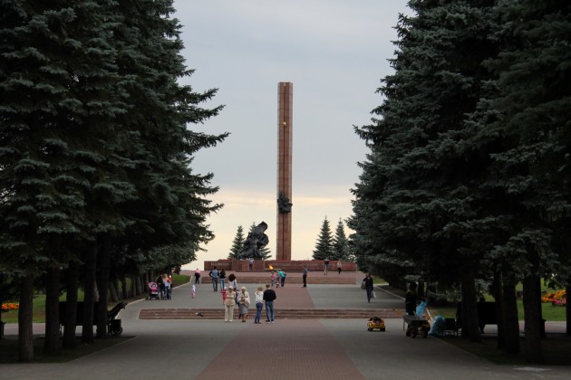 После двинулись к обязательной для нас точке - Парку Победы. Центральное место в парке занимает Памятник Героям Советского Союза А. Матросову и М.Губайдуллину. Так же в парке представлены образцы советской артиллерии, танк т-55 и, конечно, танк победы т-34.