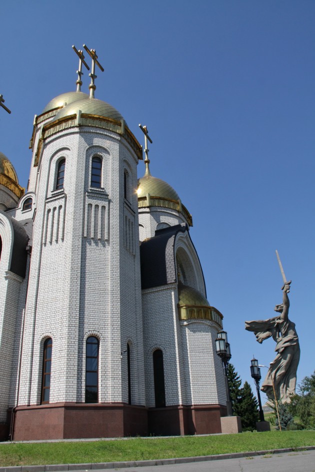 При свете дня мы обошли мемориальный комплекс полностью. Сильное впечатление произвела смена караула у вечного огня. Караульные целый час стоят по стойке смирно на сорокоградусной жаре, а сама смена завораживает отточенностью движений, "люди ли они?"))... И, конечно, центральный монумент комплекса «Родина-мать зовёт!», с которым мы познакомились накануне вечером, при свете дня выглядит не менее грандиозно.