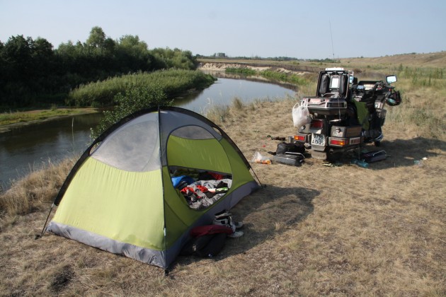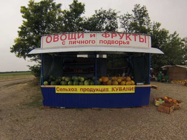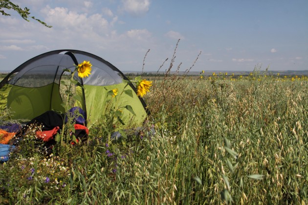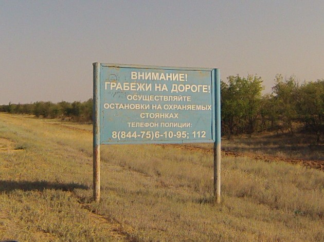Покинув Волгоград, мы двинулись в сторону Краснодара. Через 100 километров от Волгограда стали появляться странные предупреждающие знаки, текст которых гласил о том, что на данном отрезке пути процветает воровство и грабёж, и практически сразу после этих надписей ненавязчиво висели рекламы отелей по ценам, как будто мы уже доехали до моря.. Т.к. мы половину дня гуляли по Волгограду, долго ехать сил не было, да и солнце стремительно клонилось к горизонту. Мы проехали примерно 200 километров и, на всякий случай всё таки спрятавшись в лесополосе возле дороги, устроились на ночлег.