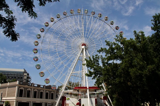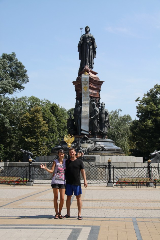 Прогулялись по Красной улице - главной улице Краснодара, до памятника Екатерине II (Краснодар до революции именовался Екатеринодаром, т.к. эти "спорные земли" Екатерина отдала Кубанским казакам в дар). Зашли в парк Горького, где в феврале 2014 года установили Большое колесо обозрения - 3 по высоте в России (52 метра).