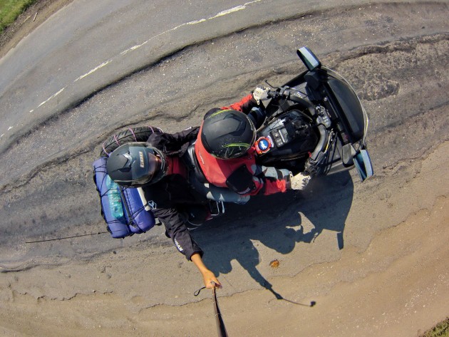 По пути мы отстали от ребят, т.к. ехали медленнее и иногда останавливались, чтобы сделать фотографии. В Волгоград мы въехали уже затемно. Попытались найти предполагаемое место дислокации общего ночлега самостоятельно, но ничего не вышло. И тут совершенно случайно (как всегда) мы встретили местного парня Игоря на мотоцикле!