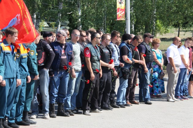 Около 14:30 закончились торжественные мероприятия, и все засобирались стартовать. Организованная Ночными Волками колонна, сопровождаемая сотрудниками ДПС, прошла через город и 5 или 6 мотоциклов, к которым мы и присоединились, выдвинулись в сторону Волгограда.