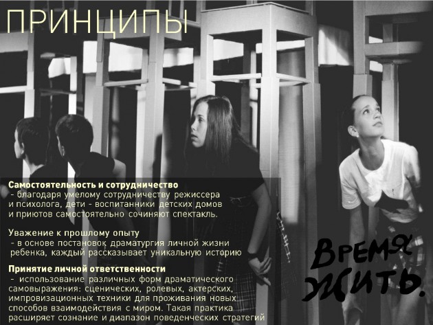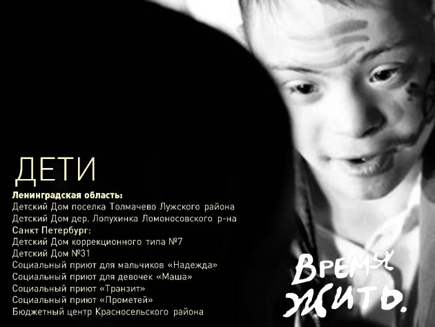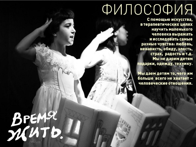 Третий ежегодный Фестиваль Благотворительного театрального проекта «Время Жить» пройдет при поддержке Благотворительного Фонда «Ариэль», миссией которого является подготовка, организация и проведение частных образовательных, культурных и духовных мероприятий для детей-сирот из детских домов и приютов Санкт-Петербурга и Ленинградской области.