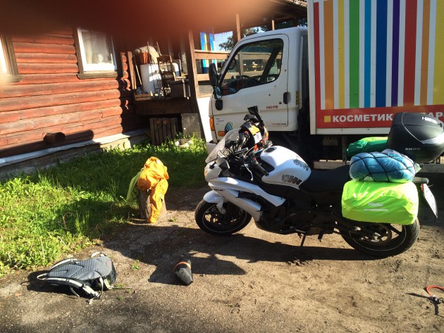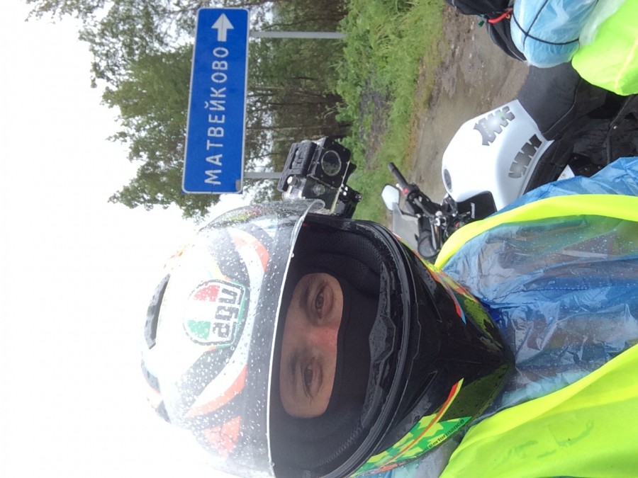 Проезжал город Клин в состоянии ахуя. Чтобы хоть как-то рулить, останавливался и пытался согреть руки о двигатель. Но это спасало минут на 10-15, потом снова боль от холода. На одной из последних передышек, уже в районе Истры, у меня началась дрожь от холода, которую я не мог контролировать. Ехать приходилось с открытым визором, чтобы хоть что-то видеть. Останавливаться в лесу на ночлег было бессмысленно – все залито водой. Палатку в луже не поставить, да и при таком ливне она промокла бы за пару часов. Промокло у меня все до самых трусов, и при температуре воздуха +7 это было все равно, что лечь голым в снег. Так холодно и хуево мне давно не бывало. Ехать, конечно, все равно круто, я ни о чем не жалею. Но это адище.