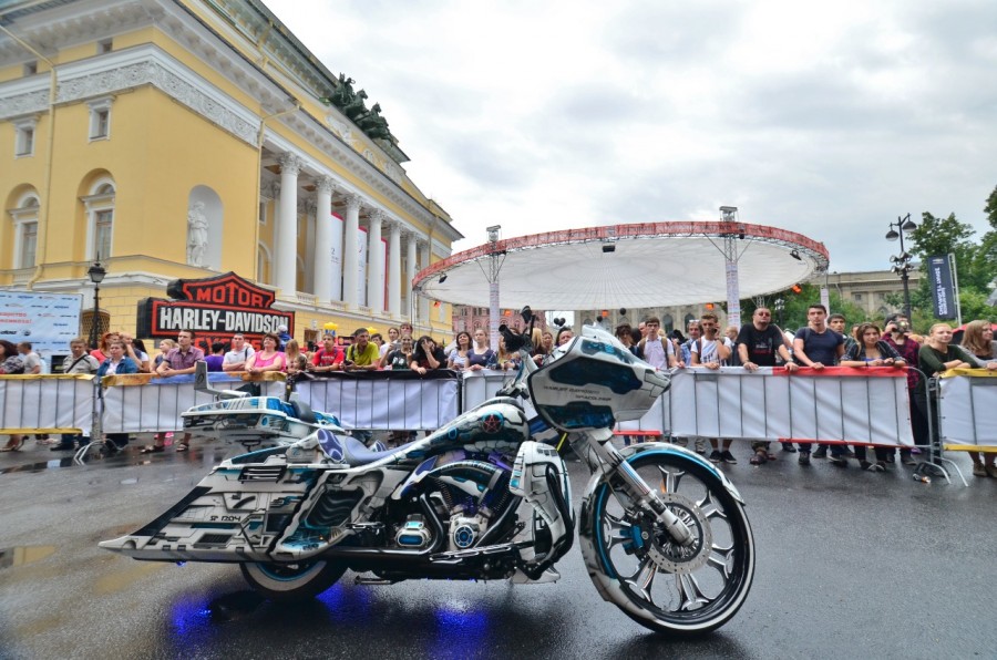 9 месяцев. Столько времени провели механики, специалисты по стекловолокну компании GraphCustom РокГараж, приглашенный в проект художник и их Заказчик Сергей в совместных муках создания самого крупного и, пожалуй, самого дорогого бэггера в Санкт-Петербурге.