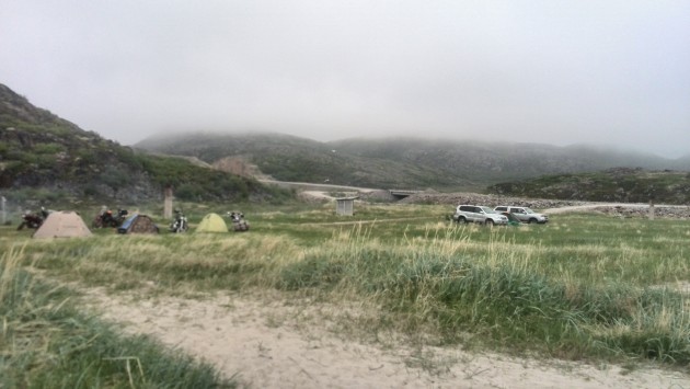 Припарковав мотик, и поздоровавшись со всеми, я сразу решил ставить палатку, чтоб потом не спать под открытым небом. Нет, я не боялся замерзнуть! Я боялся сгореть под палящим северным утренним солнцем!) Плюс 26 градусов - такой погодой нас встретил берег Северного ледовитого океана!)