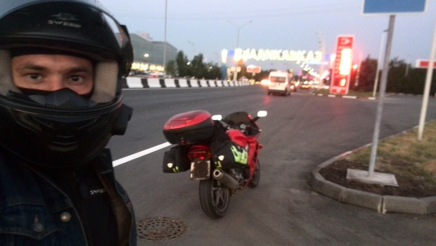 Дальше наш путь лежал в Брянск. Но так как я направлялся в Грузию через Владикавказ, а мой товарищ в Крым – перед Брянском мы разделились. Он заночевал там, а я решил заехать в Курскую область к родителям на денек. Погостив у родителей, выспавшись и отдохнув, я поехал в сторону Ростова. Дорога лежала через Россошь. Для моего спорт-туриста покрытие оказалось не очень подходящим, да еще и сплошные ремонты на пути. В общем, так вышло, что до Ростова я не доехал около 200 км, и решил заночевать в поле. Не то, что бы устал, просто в темное время суток ехать совсем не хотелось. Благоразумие превозобладало. Лучше уж нормально выспаться и с самого раннего утра продолжить путь. Но, к сожалению, выспаться нормально не получилось. Всю ночь меня зае…вали полевые мыши своим шебуршанием. А потом еще и лиса пожрать пришла на запах консервов. Оставалось дождаться местной придорожной гопоты… Так и пролежал до утра с ножем под подушкой, толком глаз не сомкнув. В тот момент я очень сильно почувствовал нехватку фляжки с вискарем, которую забыл дома на столе. Утром, покушав овсяной кашки и попив зеленого чаю, поехал дальше. В планах было добраться до Тбилиси.